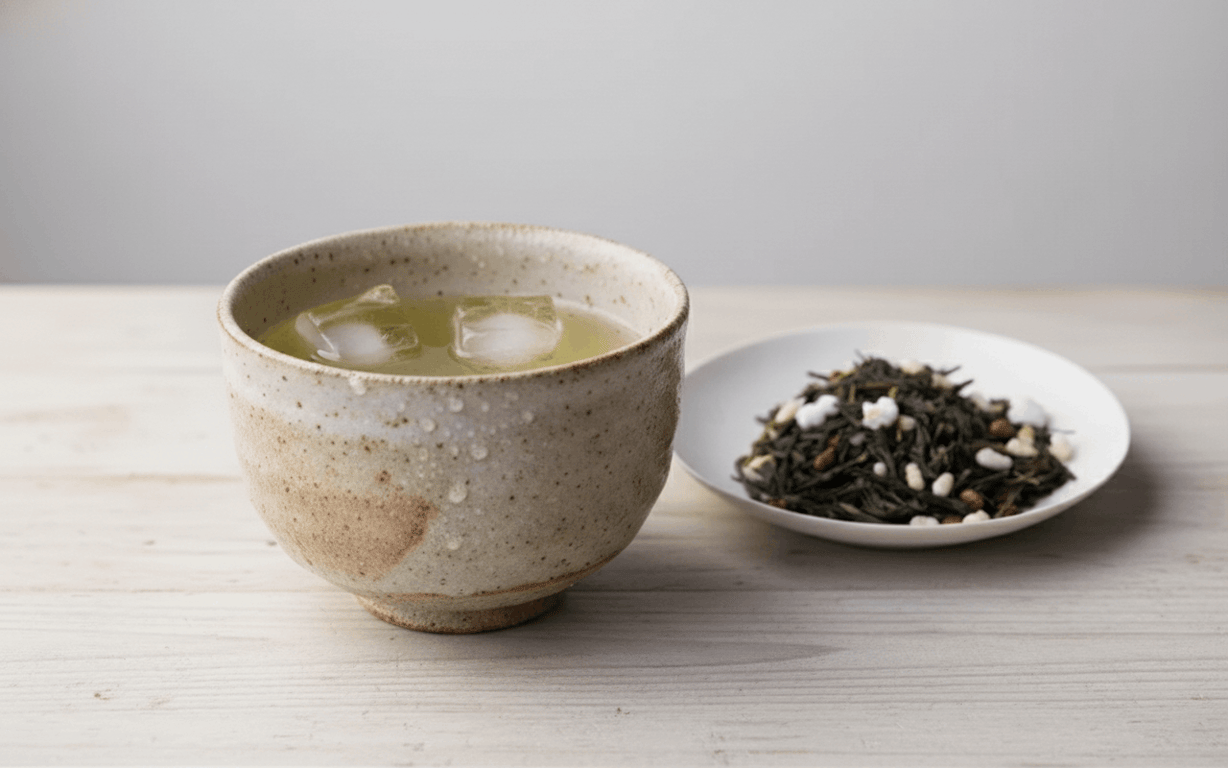 Genmaicha lạnh là genmaicha được ủ lạnh trong thời gian dài. Phương pháp này giữ nước trà trong, thể hiện rõ đặc tính tự nhiên của trà xanh Nhật Bản và gạo rang